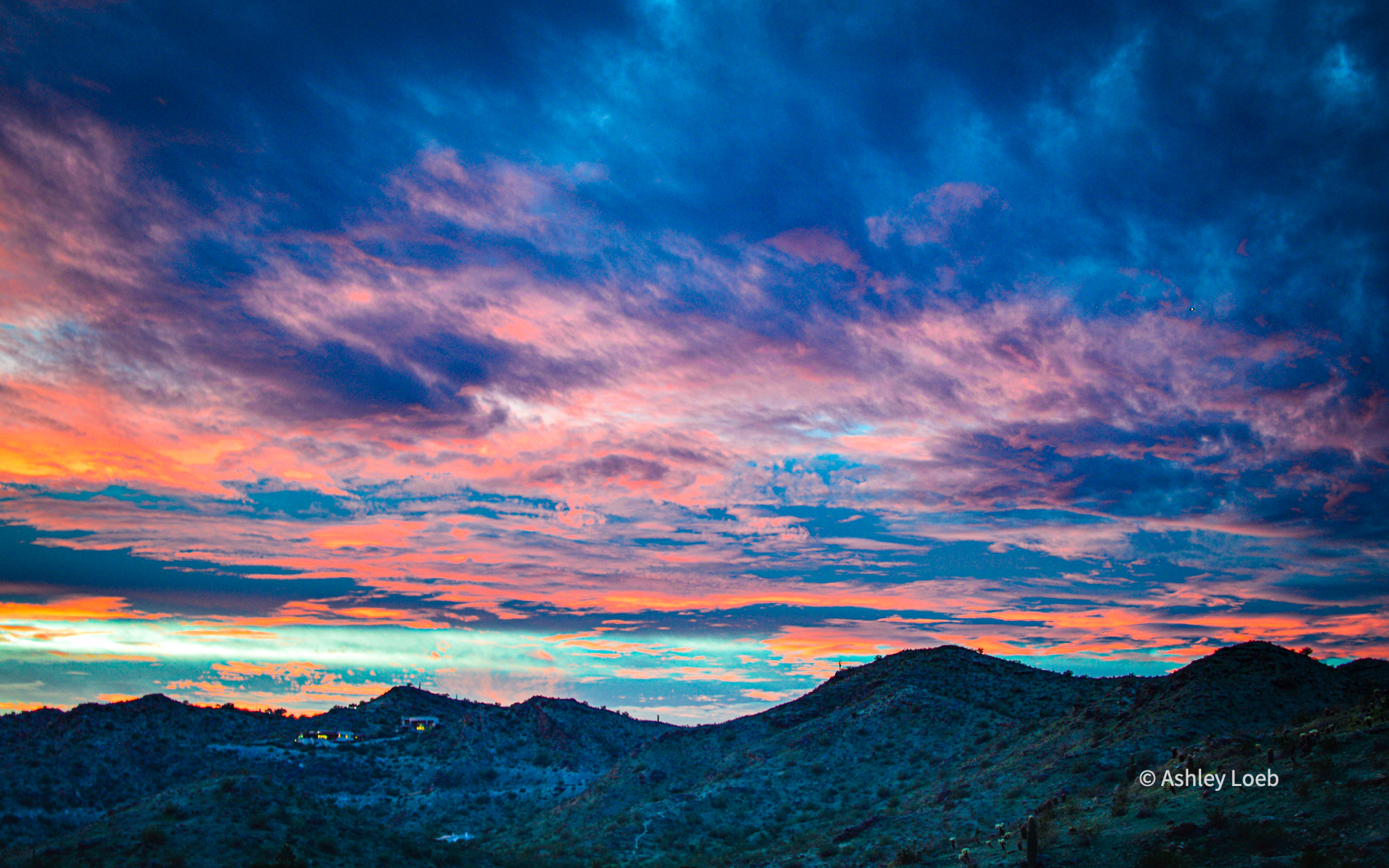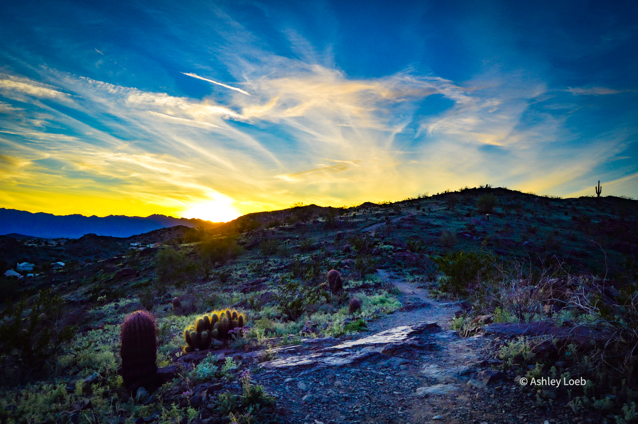 During my last year in Arizona, I had an inkling to get back out on the mountain trails and had the perfect hiking buddy (my Kelpie Mix pup Raven) to join me. I am so glad I made that decision, not knowing this would be one of my last times to experience and capture the beauty in this state. Phoenix may be a desert valley that gets hotter than an oven in the summer, but one of its best features are the beautiful sunsets. And the perfect place to view them? On the mountains, of course! One of my favorite spots to go that was close to home. South Mountain Park and Preserve consists of over 16,000 acres, making it one of the largest municipal parks in the country. There are more than 51 miles of trails, many of which lead to spectacular views. Most of the sunsets featured here were captured from this expansive place. The colors some days were unbelievable and there’s nothing like the feeling of standing beneath an open sky that transforms into so many colors, literally like a painting unfolding and ever-changing on the world’s biggest canvas. It’s been noted to be one of the best places in Phoenix to watch the sunset and there’s a reason why! Please enjoy these favorites of mine and if you are in, or planning to visit Arizona in the future, check out the website/info at the bottom of my post for more info on South Mountain and places to watch the sun in its glory moment!